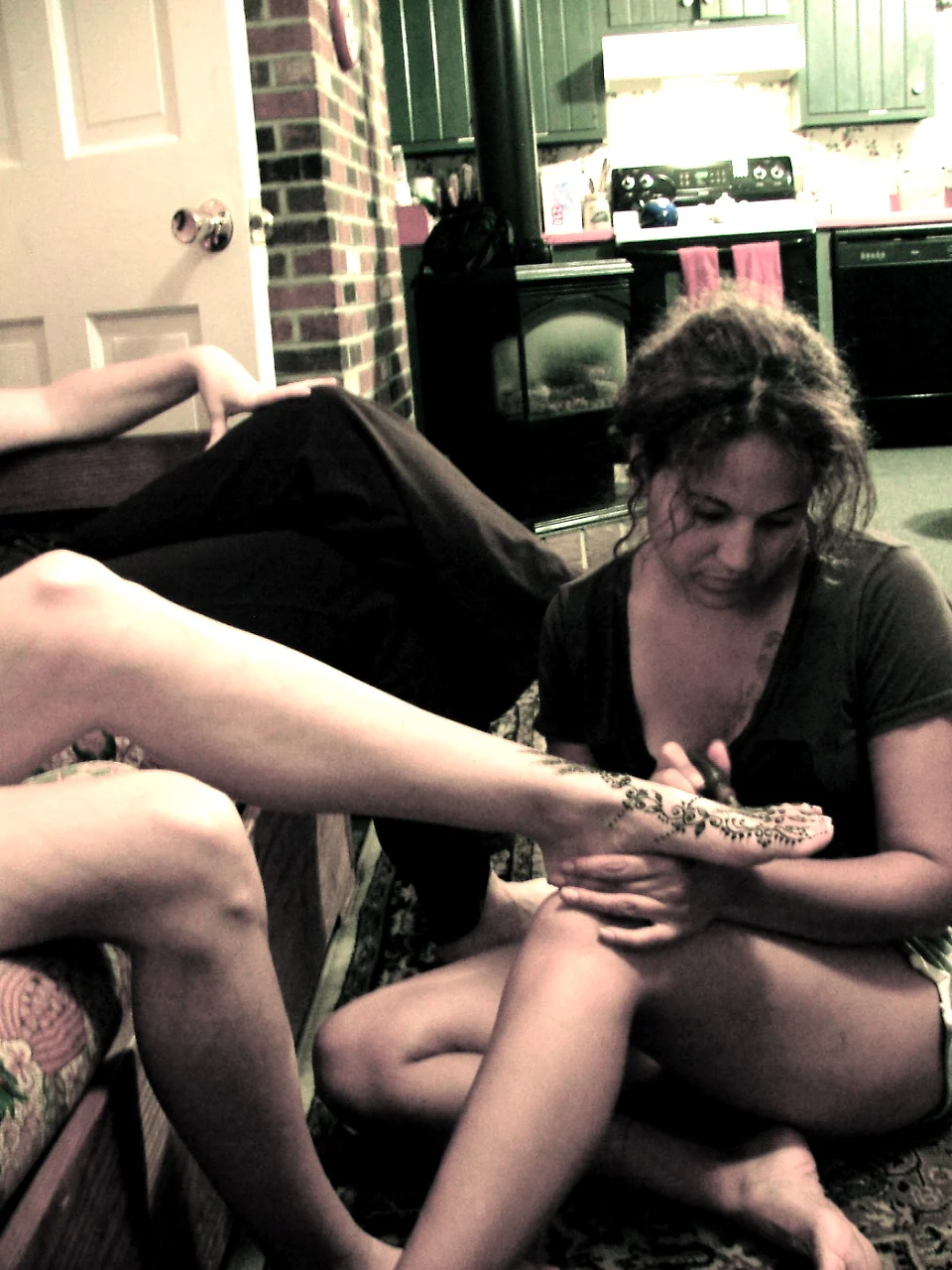 Mehndi has been a tradition in India to apply to the bride to be and her wedding party a few days before the event in marking the passage of becoming a wife and starting a new life. With blessings to her and her family and friends a bride might do her hands and feet and hide a secret message to her husband to find in her henna design, the idea behind the henna stain is to not do house work or chores until the henna has worn off as a gift to the bride. This is a time for the bride to be waited on hand and foot. There are many symbols that can be drawn for a blessing for long life, wisdom, love, fertility,strength and unity. Then the beautiful henna stain is a gorgeous addition to the brides gown and her bridesmaids for the wedding day. To bring a group of women together like this way is fantastic!